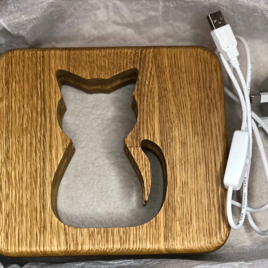 Cat Night Light - Oak Wood LED Handcrafted Decorative Lamp